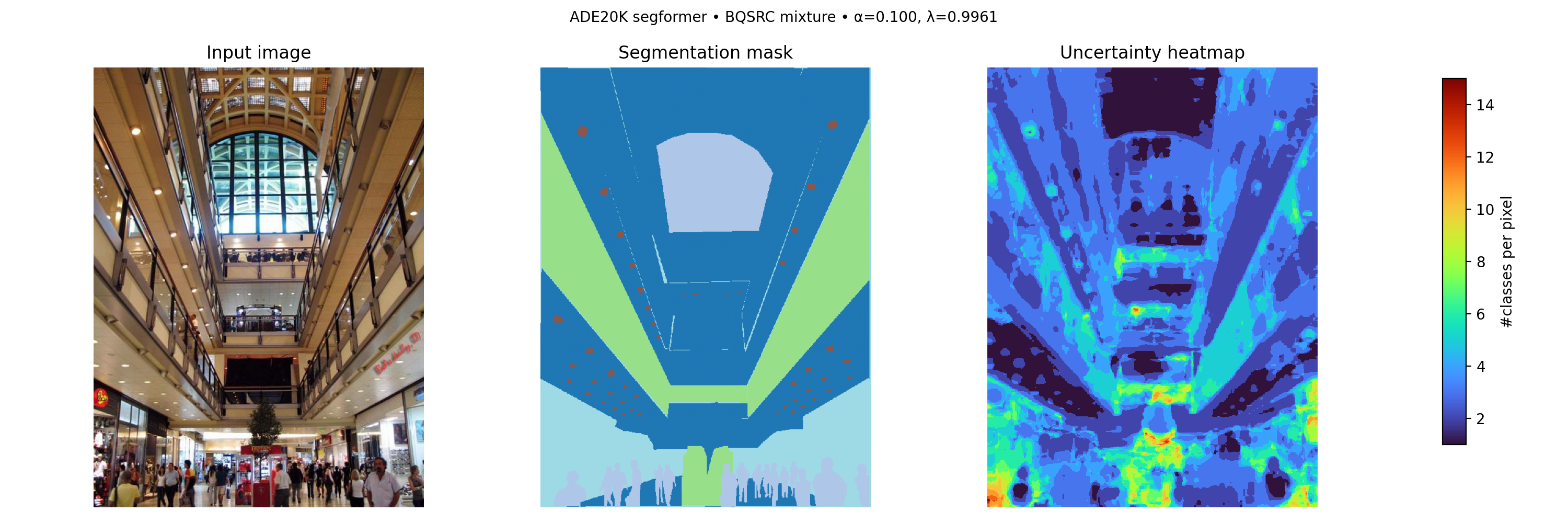One part I especially like is that the same framework extends cleanly to dense prediction. On ADE20K, the mix 95/5 spectrum reduced empirical risk from about 0.099 to 0.082 and improved coverage from 0.901 to 0.918 with only about 0.25 extra classes per pixel.